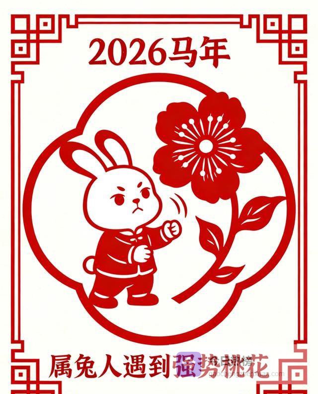民俗专家说2026丙午马年是60年一遇的"赤马年",双火叠加催旺人缘。但属兔人不知道的是,这种特殊年份会让三合桃花局变成"烂桃花培养皿"。数据显示,近三年马年情感纠纷案中,属兔女性占比高达37%。