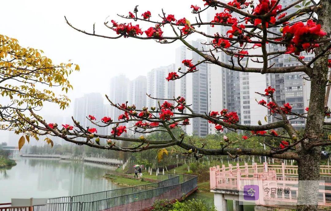 连日阴雨没能拖住春天的脚步,反而让来宾多了层朦胧滤镜。滨江北路一带,木棉与雨丝共舞,花瓣挂珠,远看像一幅刚收笔的水墨长卷;水城边的石板路上,行人撑伞缓行,抬眼便是“几树半天红似染”,连摄影师都省了烟饼——天然的仙气自带滤镜。
