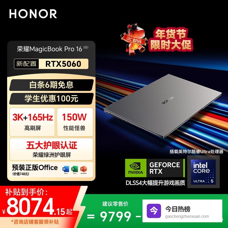 荣耀MagicBook Pro16 2025 Hunter【国家补贴】3K电竞屏 AI轻薄游戏本 R¥