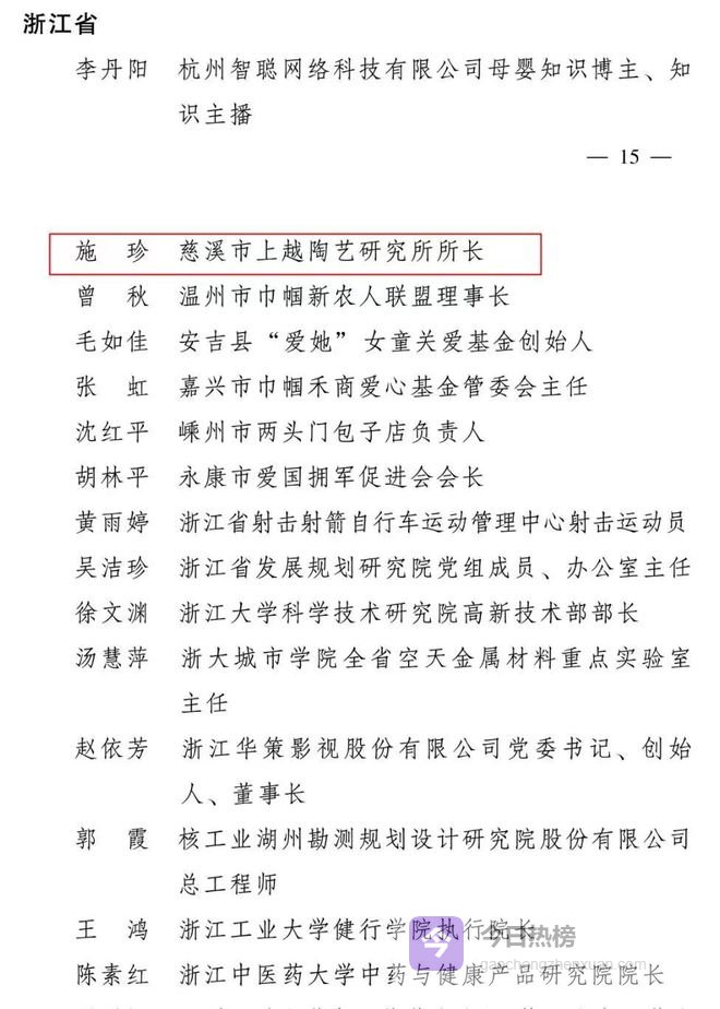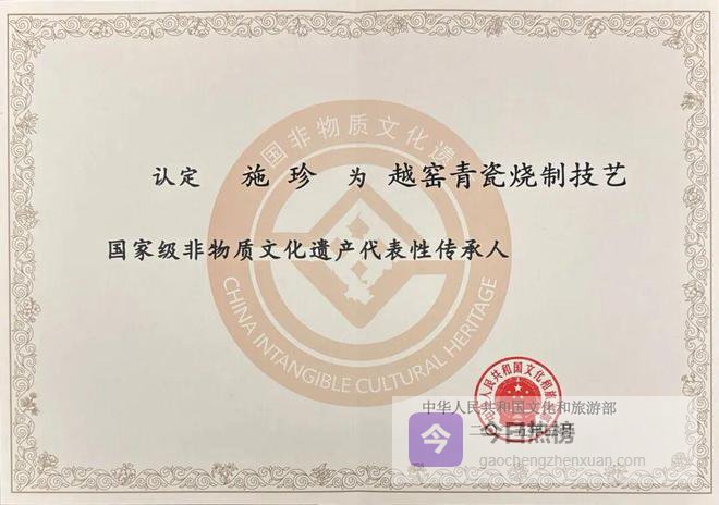此前,施珍曾先后获得“浙江省工艺美术大师”“浙江工匠”“浙江省劳动模范”等称号,2015年荣获“全国巾帼建功标兵”,2021年入选全国文化名家暨“四个一批”人才,2025年又成为宁波市首位入选第六批国家级非物质文化遗产越窑青瓷烧制技艺代表性传承人。