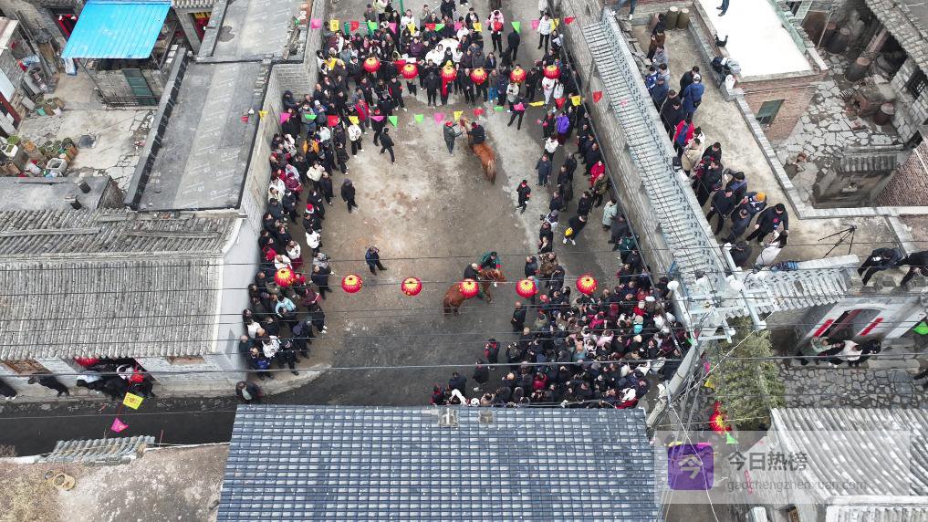 3月4日,农历正月十六,这个距离娘子关仅6公里的小山村,迎来了一年中最热闹的时刻,村中那条长约400米、宽不足4米的青石古巷上,里三层外三层挤满了人。沿路民房的台阶上、门槛上,甚至屋顶上,都早已站上了不请自来的看客,主人家却也毫不在意:“今天这个大日子,大家一起热闹热闹!”