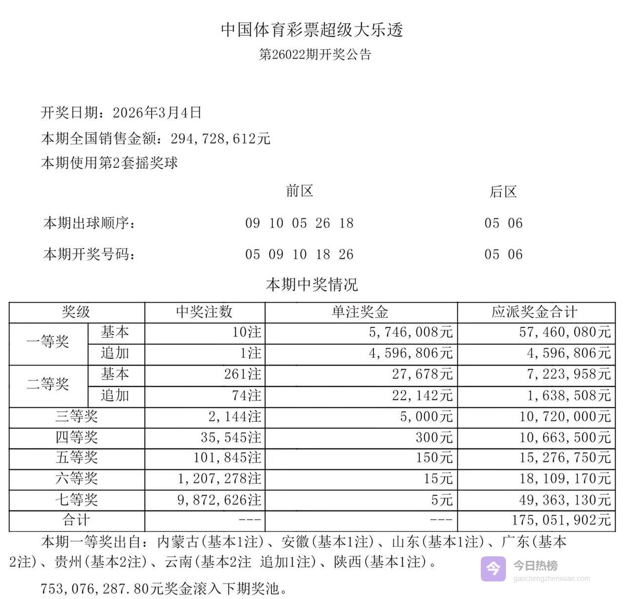 这事儿怪就怪在,明明是中了二等奖,咋就混成了这步田地?咱先不看那令人心碎的二等奖,瞅瞅隔壁“别人家”的一等奖。今晚大乐透这一波开奖,那是真没含糊,直接来了个“小井喷”。全国一共开出10注一等奖,单注奖金574万元。这数字听着才顺耳,这才叫“改变命运”的入场券。更让人眼红的是,这10注里头,云南那边的运气那是真硬,不仅拿下2注,其中还有1注搞了追加,多拿了459万追加奖金。这一加一减,差距一下子就拉开了。