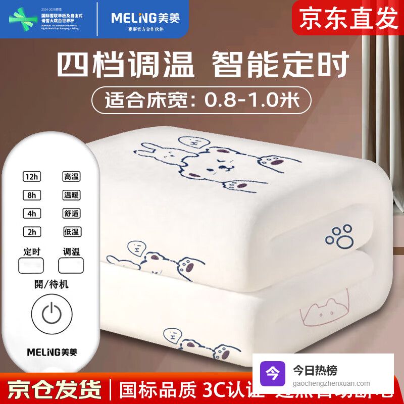 美菱(MeiLing)双人电热毯单人电褥子安全调温学生宿舍加热毯 【四挡调温定时】1.5*0.7米-小熊¥