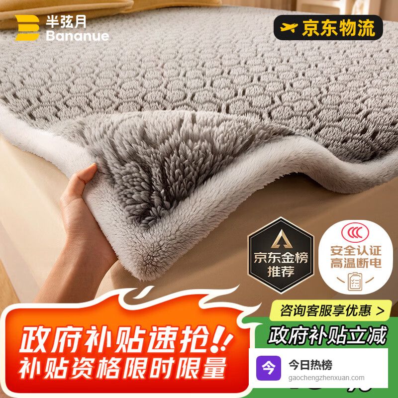 半弦月【高温断电】电热毯石墨烯褥子防漏电可水洗安全不起火 适2m床¥