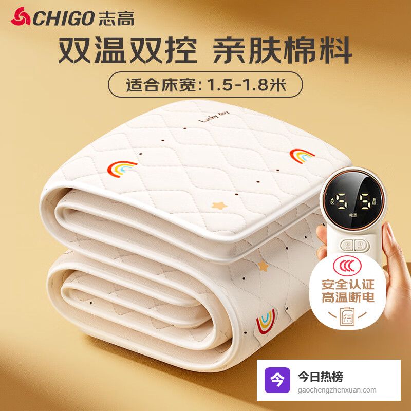 志高(CHIGO)【高温断电】石墨烯双人双温控防水3c认证电热毯电褥子1.5x1.8m¥