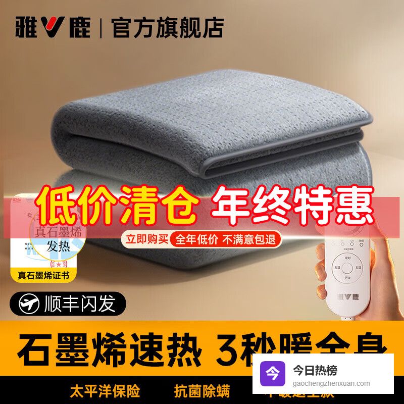 九、雅鹿雅鹿速热NO.1电热毯采用石墨烯发热材料,具有远红外发热功能,能够实现快速升温,让你不用等待太久就能感受到温暖。远红外的加热方式不仅暖和,还能帮助促进血液循环,挺实用的。而且,采用六棱形石墨烯片,确保发热更均匀,节能环保,安全性也更高。