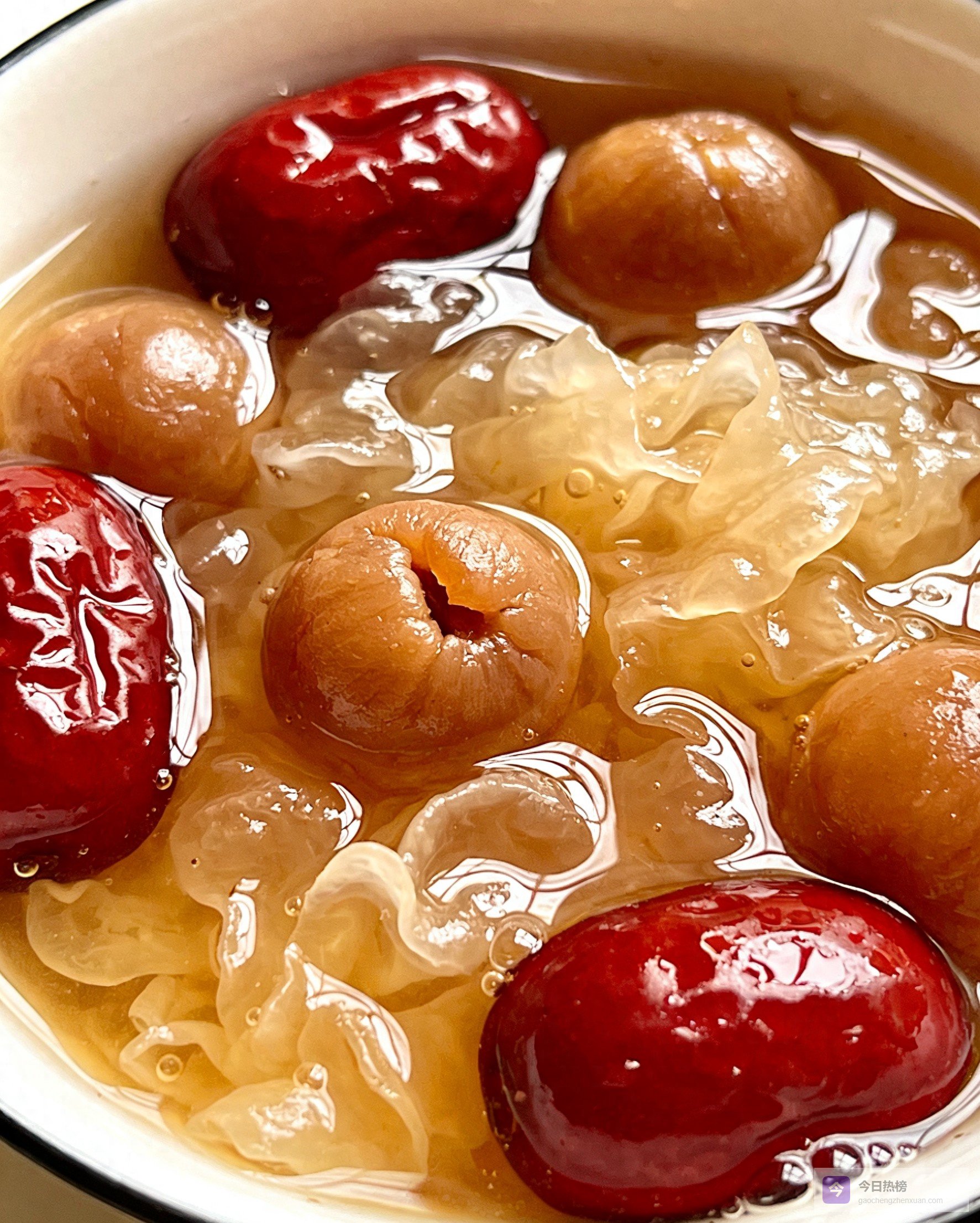 2.1 ▍ 红枣桂圆银耳羹——把“胶”喝进皮肤里材料:干银耳1朵、红枣5颗、桂圆6颗、冰糖适量
