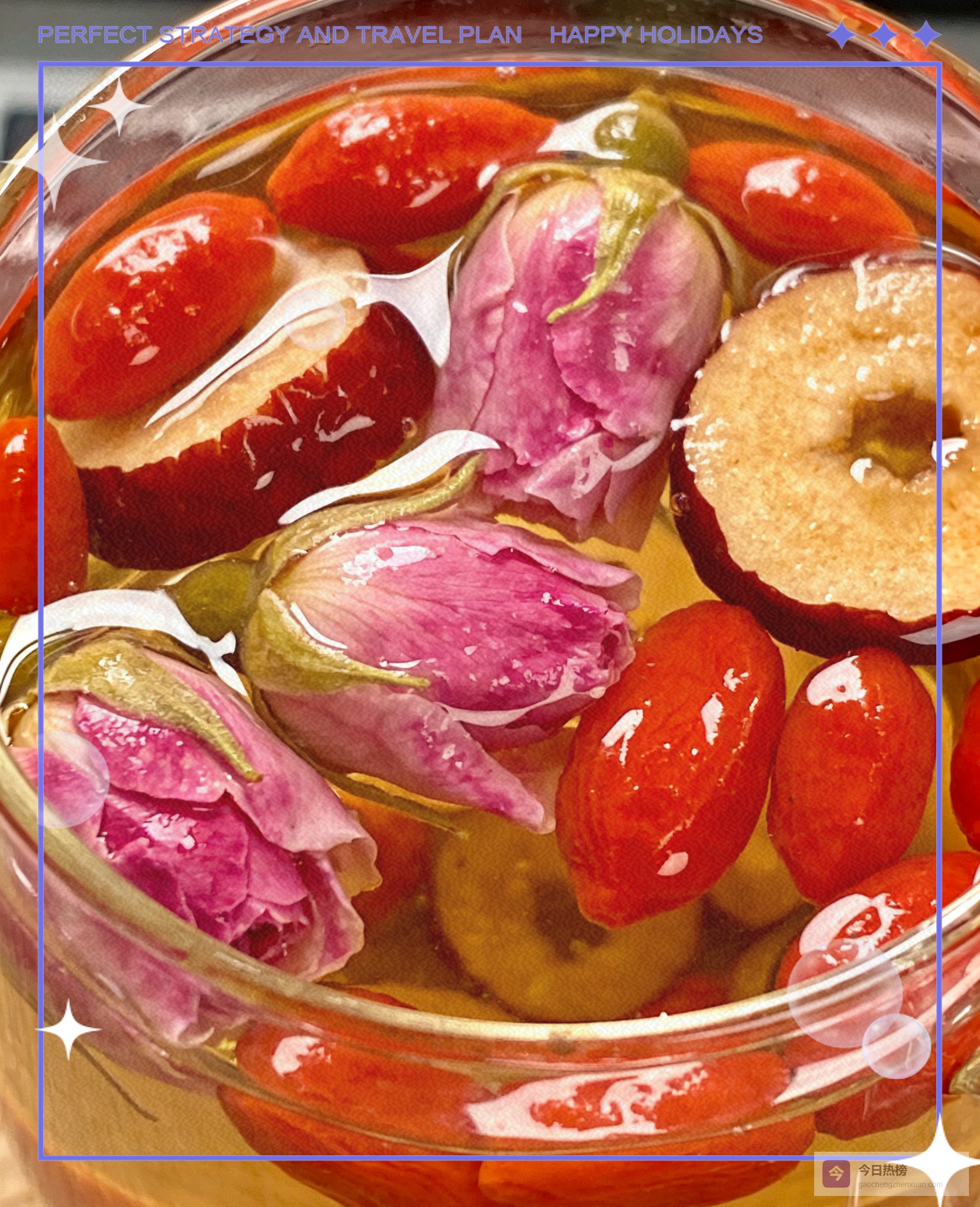 为什么它有效:玫瑰疏肝理气,打通气血瘀堵;枸杞+红枣双剑合璧,把“红润光泽”写进DNA。每天一杯,脸色像上了腮红滤镜,素颜也敢直视镜子。