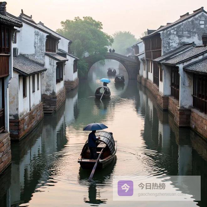 漫步江南水乡,看乌篷船划过石桥,