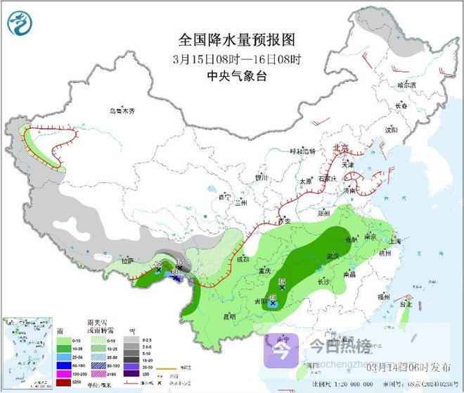 此外,降水方面,未来三天,西南地区、黄淮、江汉、江淮、江南西部和北部、西藏东南部等地有小到中雨、部分地区大雨,其中,西藏东南部、四川盆地东部等局地有暴雨。