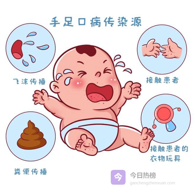 它是由肠道病毒引起的急性传染病,主要"肇事者"是柯萨奇病毒A16型和肠道病毒71型(EV71)。这些病毒喜欢温暖潮湿的环境,所以每年4-7月是高发期,9-10月还会出现一个小高峰。