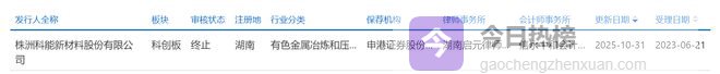 据悉,2023年6月,株洲科能曾申报科创板上市并获受理,2025年10月31日,因公司及其保荐人撤回发行上市申请,上交所终止其科创板发行上市审核。彼时保荐机构为申港证券,律师事务所为湖南启元,会计师事务所为信永中和。