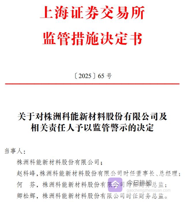 值得注意的是,2025年12月22日,株洲科能收到上交所出具的《关于对株洲科能新材料股份有限公司及相关责任人予以监管警示的决定》。