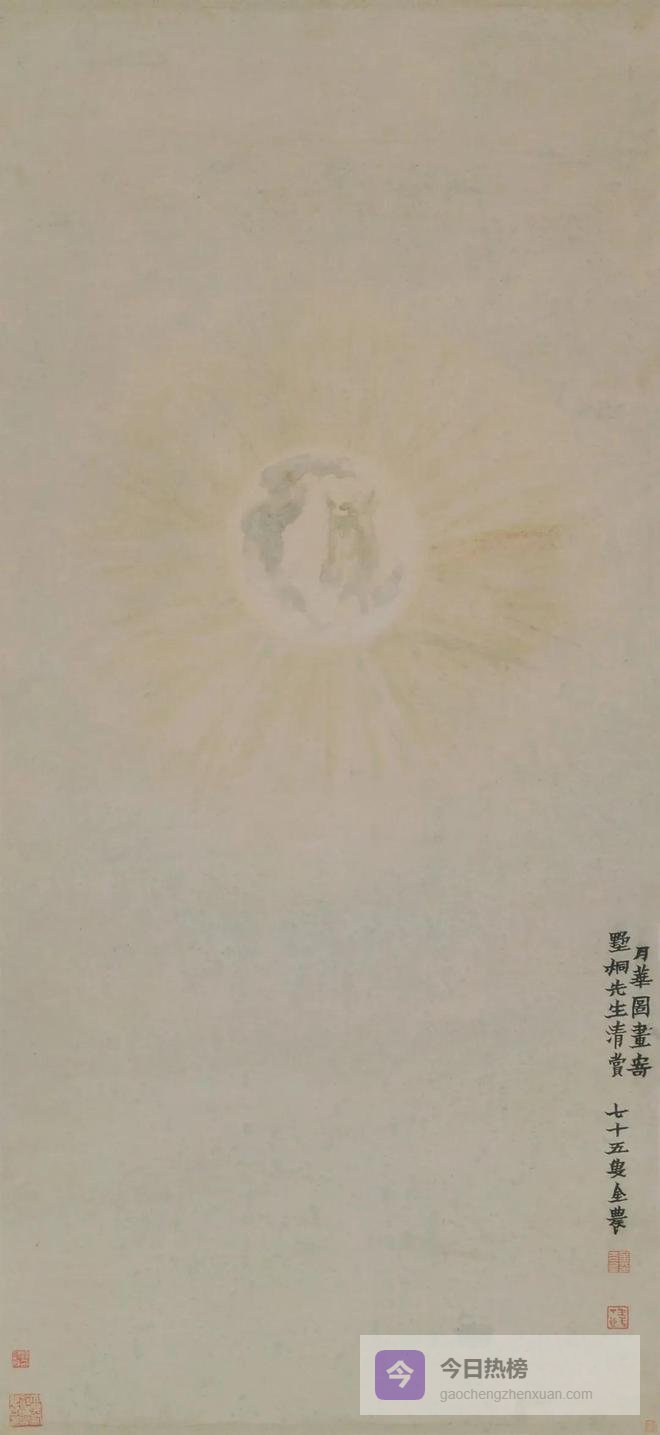 画上也没有多少字,只有款识:“月华图画寄墅桐先生清赏。七十五叟金农。”墅桐先生是张君墅,金农的好友。画这幅画时,金农已经七十五岁。到了这个年纪,他几乎失去了人世间一切可倚仗之物,剩下的,只是一轮月亮。