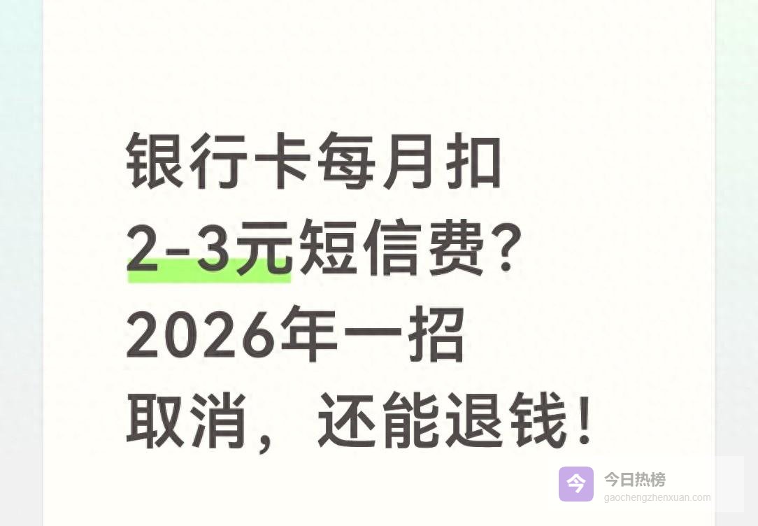 截至2026年3月,主流银行短信动账提醒月费普遍维持在2-3元,一年下来就是24-36元。手里两三张卡,十几年下来就是几百块“打水漂”,而且很多人是在稀里糊涂中被默认开通,连取消路径都找不到。
