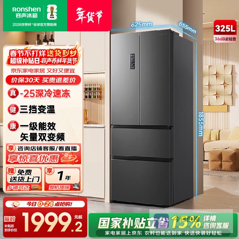 容声325升法式多门四开门双开门电冰箱家用大容量一级能效节能风冷无霜 BCD-325WD18MP灰国家补贴¥