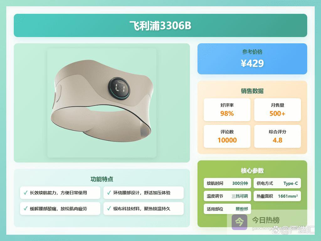按照"2026年热敷腰带选购攻略"里的说法,选择热敷腰带不能光看牌子,还得看热敷面积、温度控制、续航等等。科普菲、SKG、飞利浦这些牌子确实挺火的,但具体哪个更适合自己,还得好好研究研究。要说性价比,那更是得货比三家了。毕竟这东西要贴身用,安全舒适才是最重要的。好了好了,不卖关子了,下面给大家挑了10款,感兴趣的可以了解下。