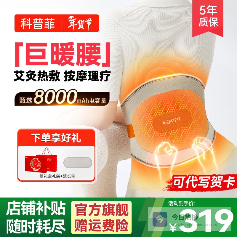 科普菲(keepfit)腰部按摩器护腰带腰椎家用腰疼多功能神器无线热敷腰椎按摩器送妈妈生日礼物女 【前后热敷-8000毫安】腰腹同暖¥