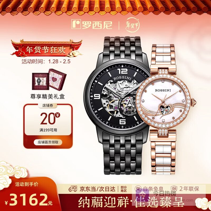 推荐理由:这款情侣款手表,专为情侣打造,象征天生一对,*分秒相依*,特别有意思。用的是进口机械机芯,提供可靠的走时性能,不用担心误差,挺实用的。表盘设计很细心,男款有精雕双面镂空,展现机械美学,三维立体效果不错;女款则用珍珠幻彩贝母材质,色彩如梦如幻,好看又有质感。