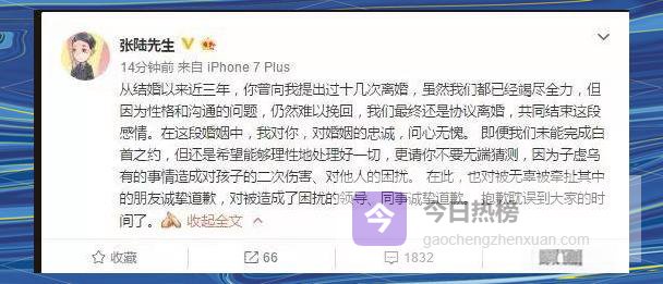 随后,张陆本人发布长文声明:“从结婚至今近三年,你曾向我提出十几次离婚。虽竭力沟通,仍因性格差异难以挽回,我们已协议离婚。我对婚姻的忠诚,问心无愧。”声明同时向被牵扯的同事、领导、朋友致歉,并恳请“理性处理,勿让子虚乌有的猜测二次伤害孩子”。