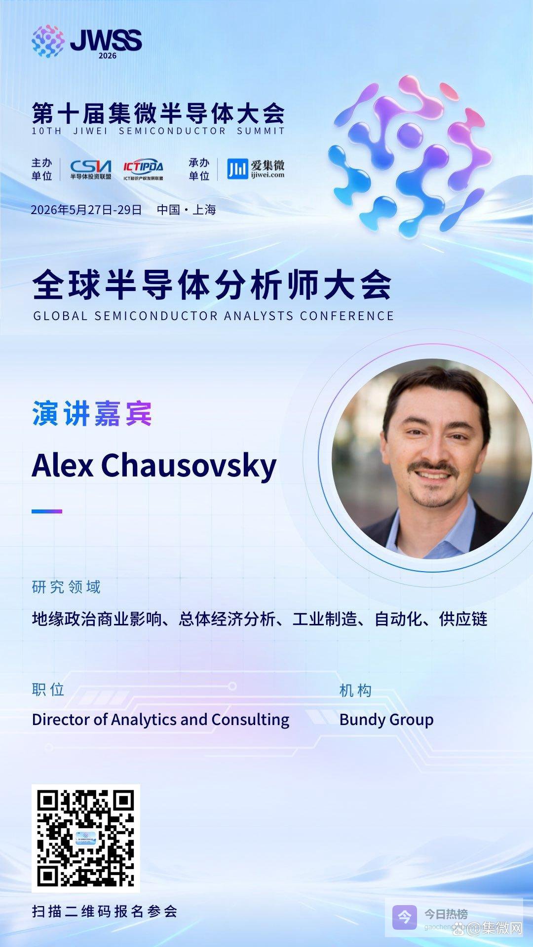 这是一场直击地缘变局与企业命脉的思想盛宴,一次与宏观战略专家面对面交锋的难得机遇。诚邀您亲临现场,聆听Alex Chausovsky的深度解析,与来自超过12个国家和地区的产业精英共同探寻不确定时代的制胜之道。5月27日,上海张江,期待与您相见!