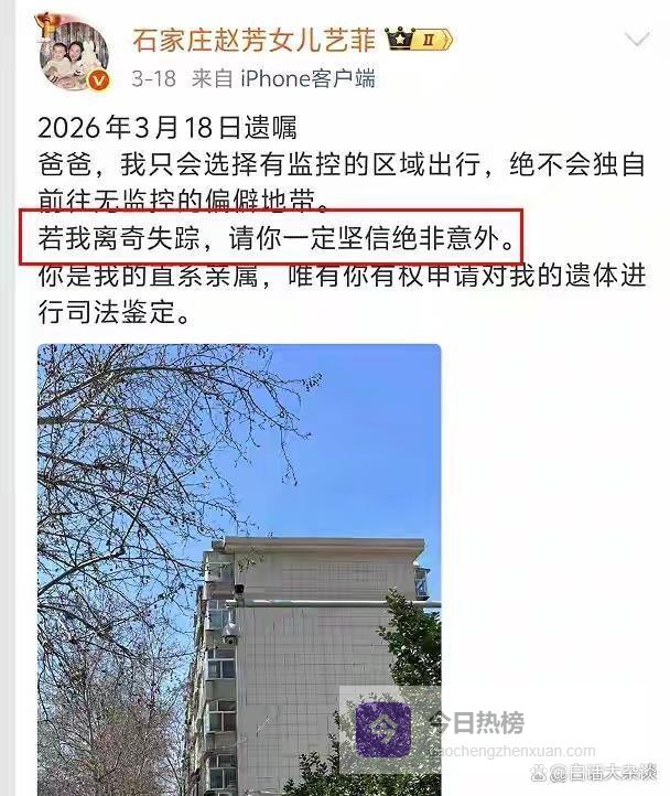 之后她又给父亲留下遗嘱,称“若我离奇失踪,请你一定坚信绝非意外”。