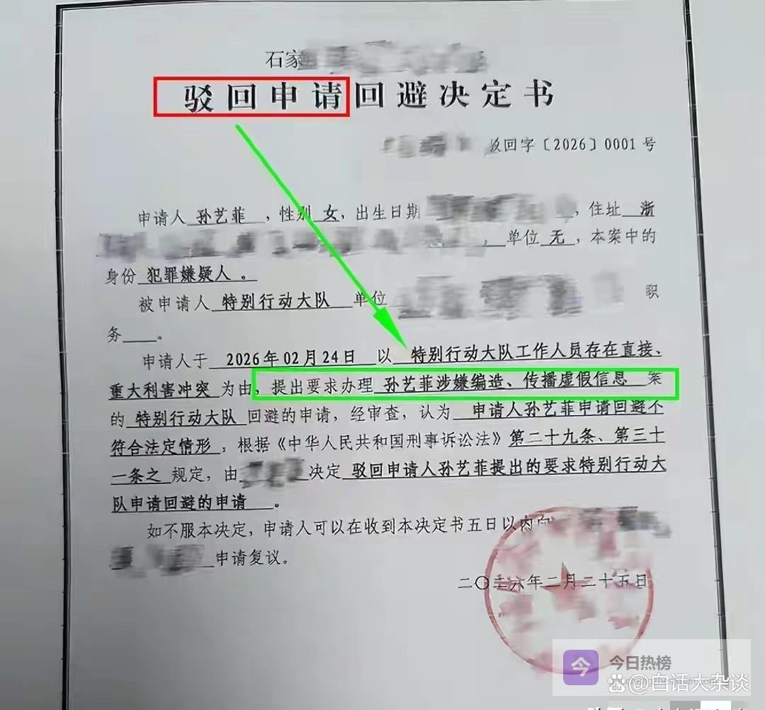 值得一提的是,前几天孙女士还提到她提交的避嫌申请也已经被驳回,理由是她本人被列为了犯罪嫌疑人,涉嫌编造和传播虚假消息。