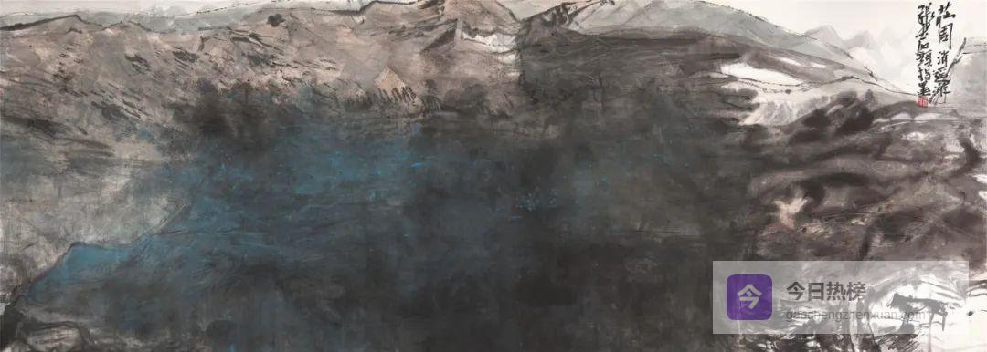 焦墨、指墨、撞水、撞粉……张志民把“技”玩到了极致。 指墨画彻底挣脱毛笔的束缚,以掌为笔、以指代毫,水与墨在掌心翻飞,留下圆浑苍茫的“掌纹”。这种古老而现代的表现方式,让抽象表现主义与中国书法在掌心里握手言和,也为中国画的“当代性”提供了另一种可能。