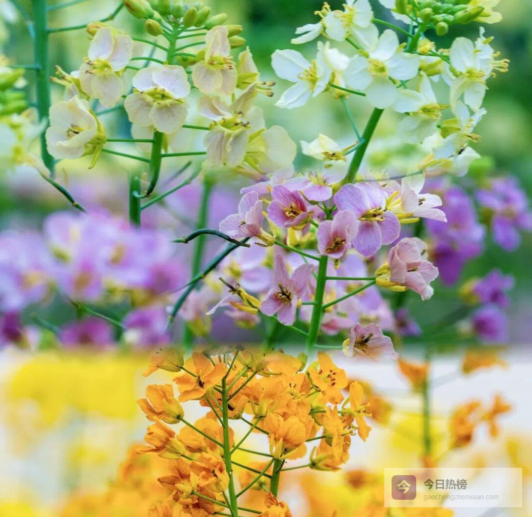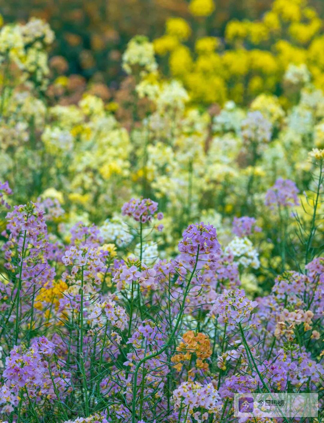 拍照秘籍:清晨7:00—9:00光线柔和,逆光拍花更透亮;午后蹲下视角,以彩花为前景,桃花作背景,层次瞬间拉满