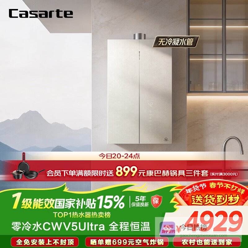 卡萨帝(Casarte)国家补贴15%【无冷凝水CWV5Ultra】16升燃气热水器天然气一级能效恒温静音零冷水京东自营上门安装¥