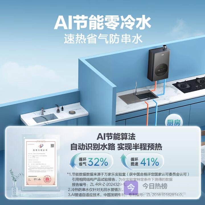 ③AI学习算法能记住用水习惯自动调整预热模式,进一步优化能耗,适合卫生间离热水器较远或早晨需快速洗漱的上班族。