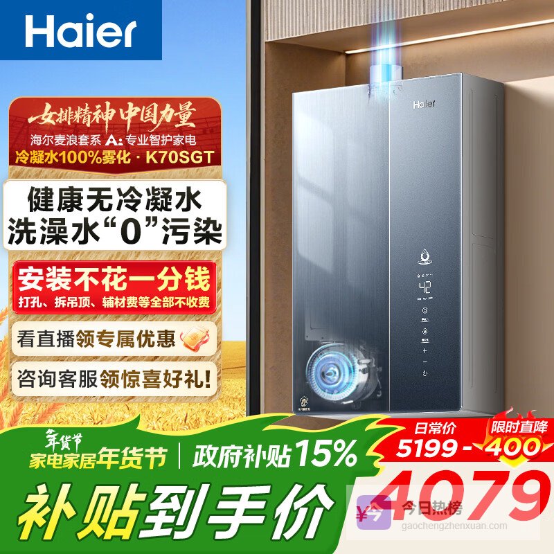 第一款:海尔麦浪套系无冷凝水K70SGT零冷水(超过500人评论,进入查看↓↓)