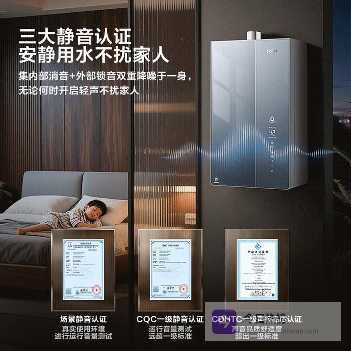 ③一级静音认证,运行噪音低至36分贝,比普通谈话声还轻,家里有老人或小孩,晚上洗澡也不会被噪音打扰。