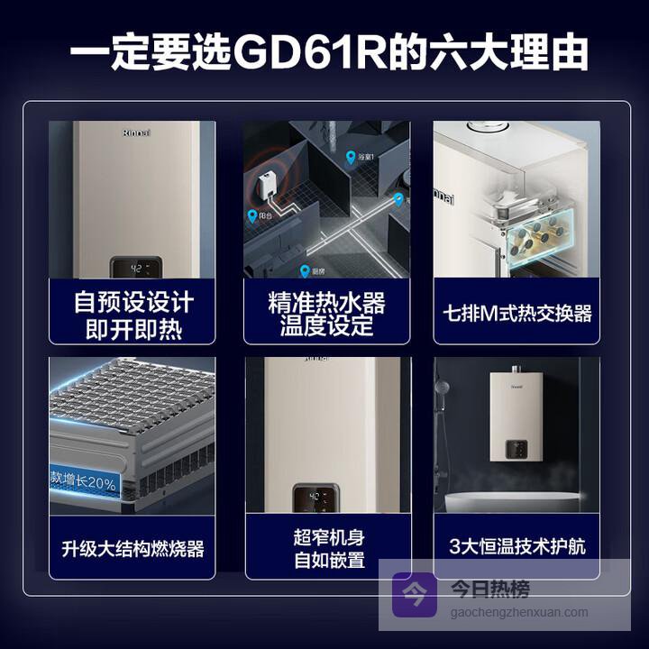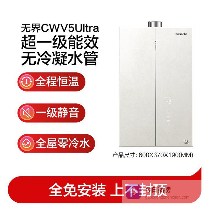 功能介绍:这款主打“无冷凝水+零冷水+一级静音”,16升大容量,支持多点用水,内置循环泵能3秒出热水。采用下置风机布局,燃烧更充分,抗风能力强。