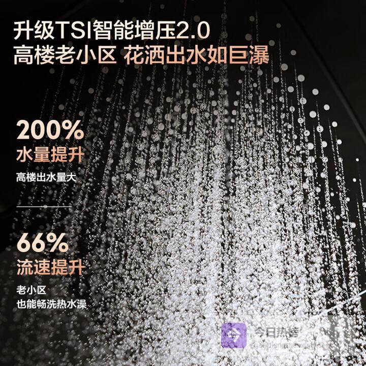 ①双增压系统包含涡轮增压泵和增压水伺服,水压提升188%高层或老小区用水也能像“瀑布”一样畅快,洗澡冲刷感强。