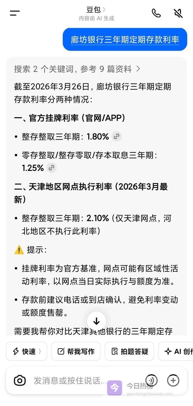 金华银行员工小高告诉潘哥:“我有个客户问,有没有2.2%的存款,我说现在哪有那么高的,最高只有1.9%;他说豆包告诉他,城商行利率是2.2%-2.5%,股份制银行多少多少……”
