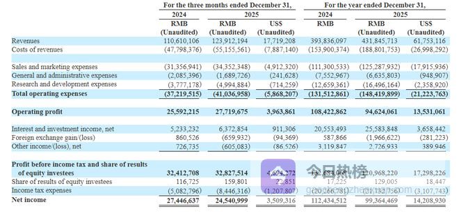 3月25日,拼多多发布截至12月31日的2025年第四季度及全年财报。财报数据显示,拼多多第四季度营收实现1239亿元,同比增长12%,全年营收为4318亿元,同比增长10%。第四季度非GAAP归母净利润263亿元,同比下降5.8个百分点,全年归母净利润为993亿元,同比下滑11.62%。