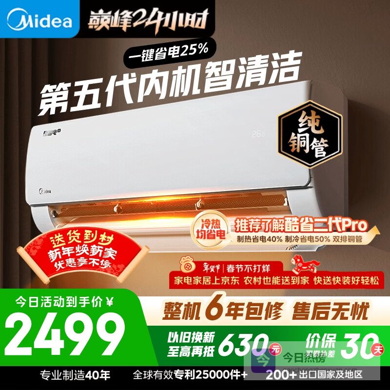 【京东自营】美的空调酷省电大1.5匹新一级能效变频纯铜管卧室节能壁挂式空调挂机国家补贴KFR-35G¥