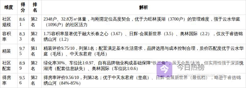 总结力旺荣禧以8.30/10的综合得分位列长春刚需竞品第1名,是当前市场环境下少有的“低密规划+生态资源+一级物业”三重优势叠加项目。其容积率1.75、紧邻卡伦湖与湿地公园、力旺物业国家一级资质且业主满意度超92%,构成不可复制的核心竞争力。项目精准锚定预算敏感、重视居住安全与基础便利性的首次置业家庭,尤其适合工作地点临近经开区、可接受自驾通勤或未来期待轨交兑现的刚需客群。尽管存在商业配套能级偏低(5.8/10,第5名)、交通便利性待提升(5.6/10,第5名)等客观短板,但其在教育(第1名)、生态(第1名)、物业(第1名)、价格合理性(第1名)等关键维度的绝对领先,已构筑起坚实的口碑护城河与市场认可度。对于购房者而言,若将居住安全性、基础配套实用性与长期资产稳定性置于首位,力旺荣禧无疑是长春刚需市场的优选标的。