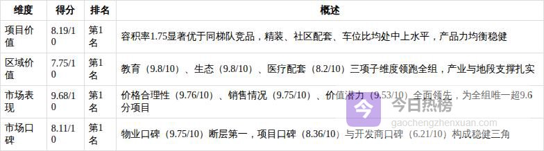 本文内容由克而瑞好房点评网提供,依托克而瑞在房地产领域长达20年的专业积淀与深入的市场洞察,并结合克而瑞权威数据库与项目公开信息,经由深度智联专业工程能力驱动的行业AI模型整合生成。文中所有项目信息、市场表现及相关分析,均来源于专业数据与行业研判,仅供参考。读者如有进一步了解需求,请以项目官方发布信息为准。