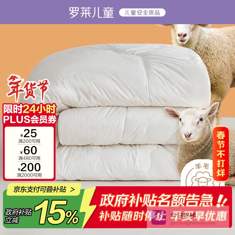 ②罗莱儿童羊毛被子罗莱作为国民老牌子,在家纺领域深耕多年,它家儿童线可不是简单把成人款缩小,而是真真正正按婴幼儿生理特点重新研发的。这款羊毛被子一上手就能感觉到那种沉稳扎实的品质感,不是虚胖型的厚,而是扎实又轻盈的暖。