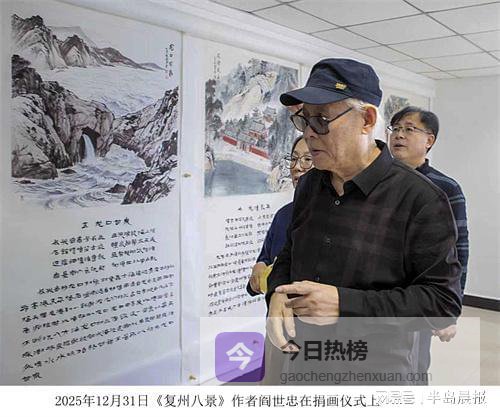说起创作这组作品的初衷,阎世忠的话语里满是深情:“我从小就知道‘复州八景’,那是我家乡最值得骄傲的东西。可惜随着岁月变迁,很多地方都变了样,原貌看不到了,心里头真是难受。”老人告诉记者,复州八景中,如今只有四景还在瓦房店市境内,其余四处已划归其他区域。每每想到这里,他便感到一种说不出的遗憾和迫切——他想把这些景致“留下来”。