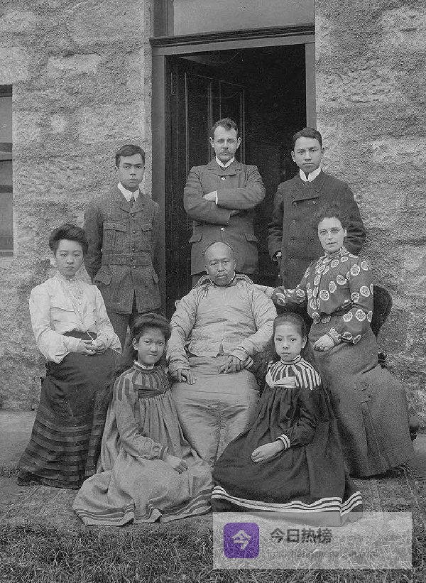 康有为及家人朋友在苏格兰阿伯丁女子学校的合影(康左边是女儿康同璧,康同璧身后是其丈夫罗昌)