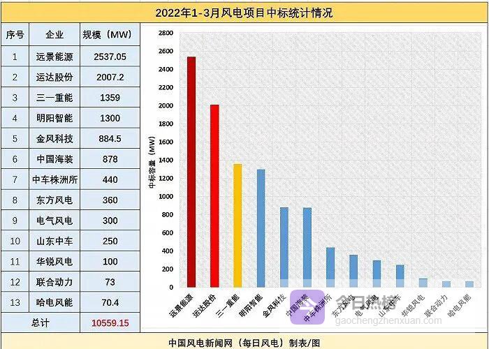 最新一季度拿单排名里,远景能源、运达股份、三一重能已把金风、明阳挤出前三。