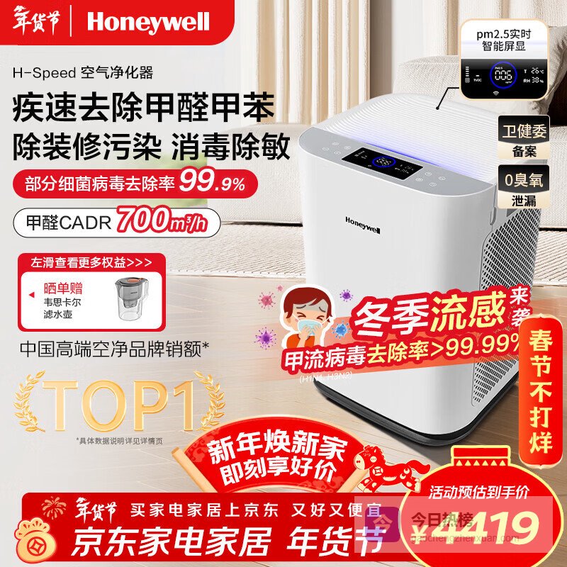 【京东自营】霍尼韦尔空气净化器除甲醛细菌花粉过敏原tvoc流感病毒新房除醛空气消毒机KJ760F-P¥