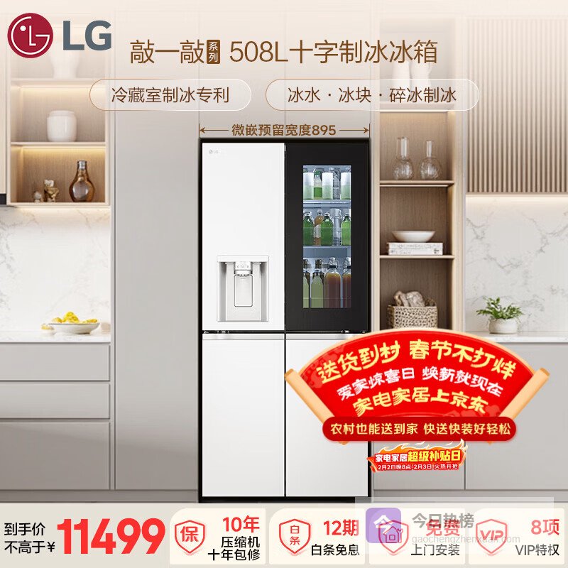 LG敲一敲系列508L十字门冰箱全自动制冰机大容量电冰箱变频风冷无霜透视窗 F544MEH85D¥