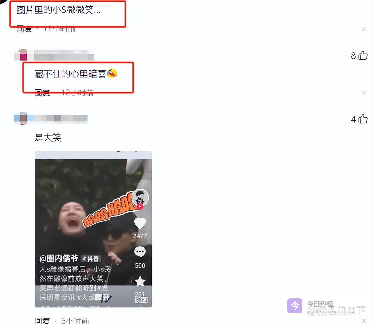 不少网友表示小S心里是藏不住的“暗喜”,从照片看起来小S的表情确实像在笑一样,不过或许是因为角度问题,