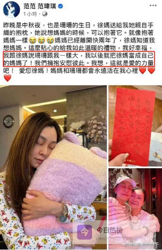 而且大S去世后,范玮琪还会在节日的时候去看望陪伴S妈,还表示要把S妈当自己的亲妈对待,