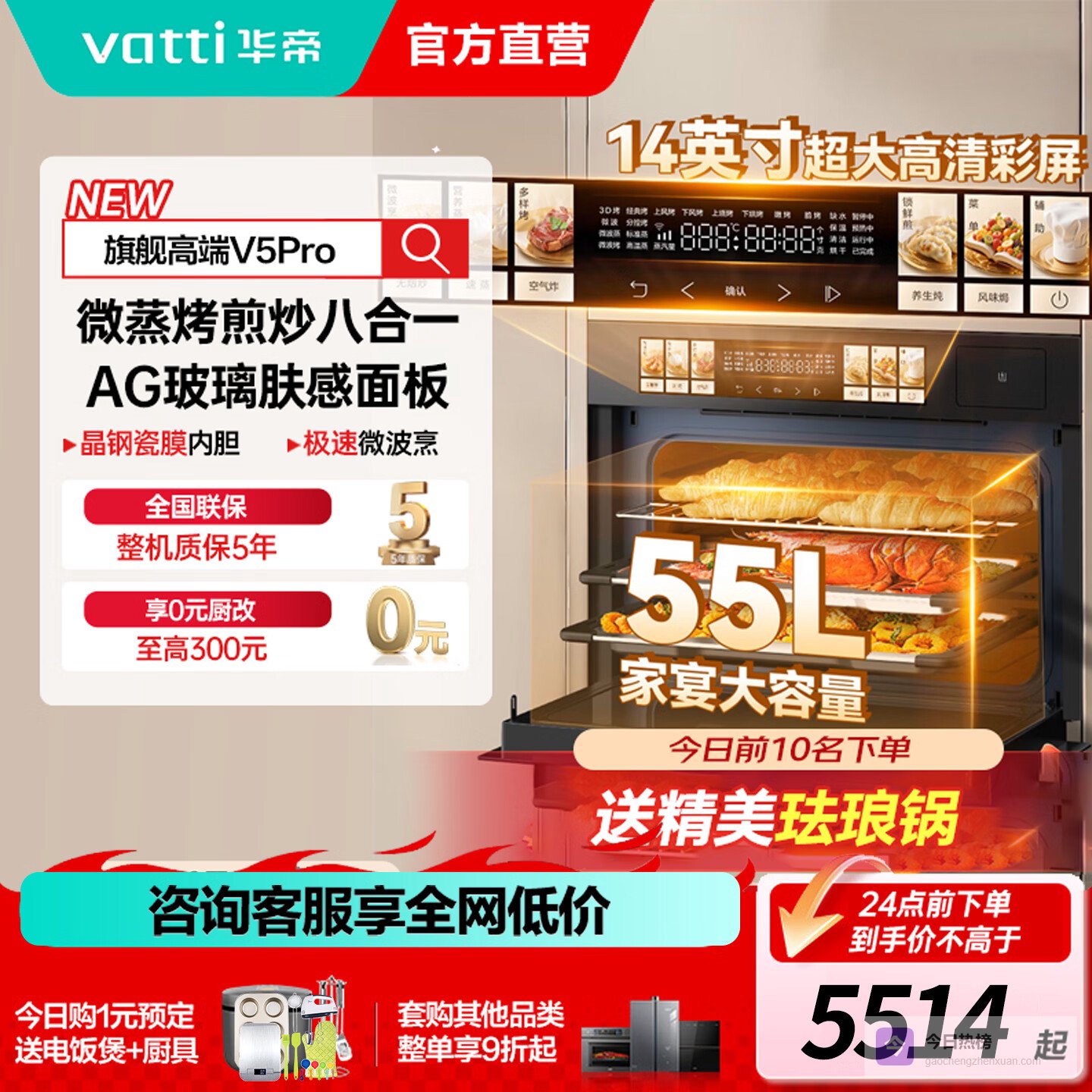 【品牌直营】华帝【小微光V5Pro】55L嵌入式蒸烤箱一体机微蒸烤焗炖炸6合1五星营养微蒸小飞碟MA¥