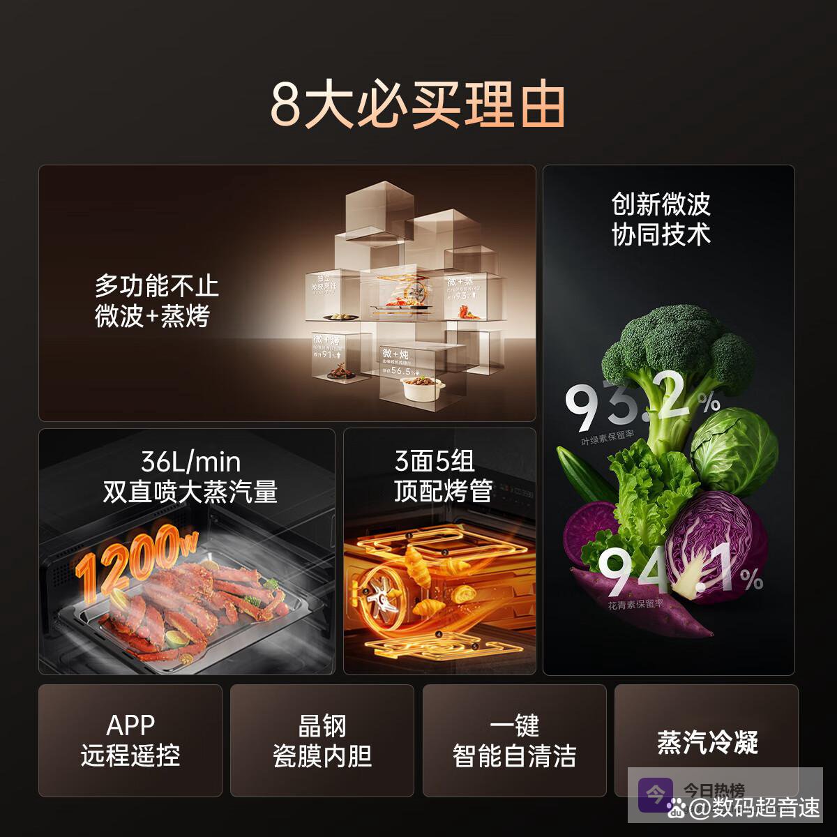 2️⃣保持食材五星级营养:先进的蒸汽技术确保在烹饪过程中最大限度地保留食材的营养成分,让每一道菜肴都健康美味。与其担心营养流失,不如选择这样一款能锁住原汁原味的蒸烤一体机,享受餐桌上的健康之选。